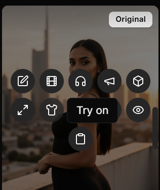 💡 Tip: The Try on button only appears on photos that haven't been upscaled. Make sure to use a photo that's ready for virtual try-on.