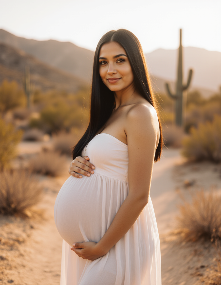 healthy pregnant model in maternity photographs, beautiful pregnant model, maternity photography in a peaceful desert oasis