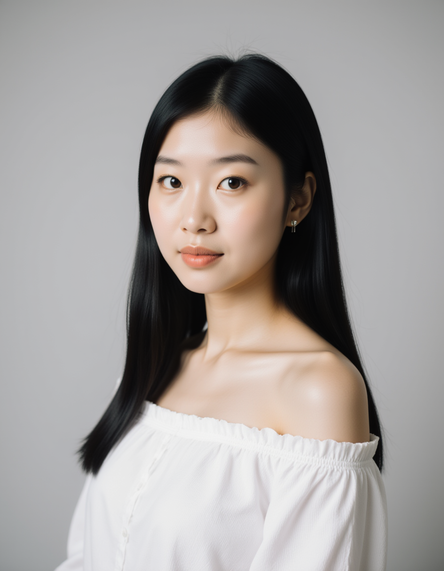 professional passport photo of the model for Turkish passport, neutral expression, looking straight at camera, plain light gray background, diffused lighting, no accessories, symmetrical composition, ID-style