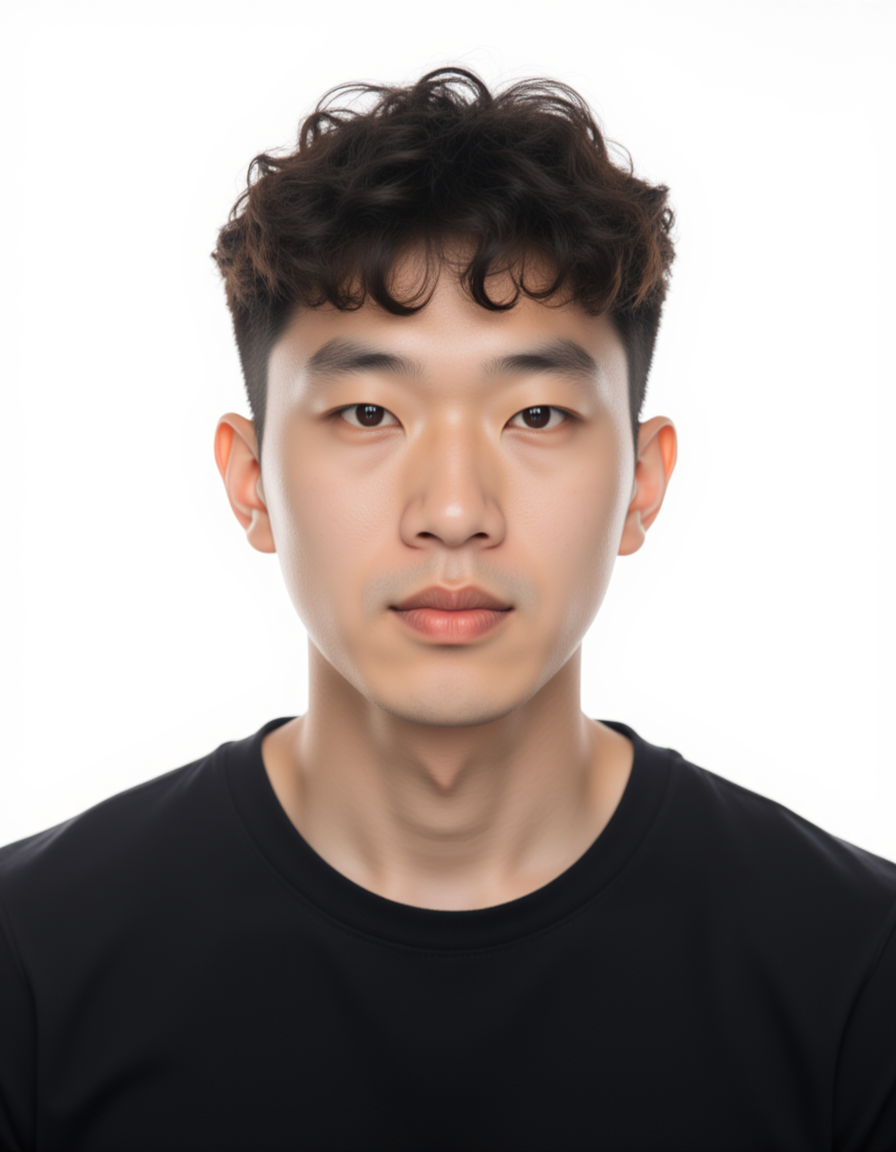 professional passport photo of the model for US passport, neutral expression, looking straight at camera, plain white background, studio lighting, no accessories, symmetrical composition, ID photo